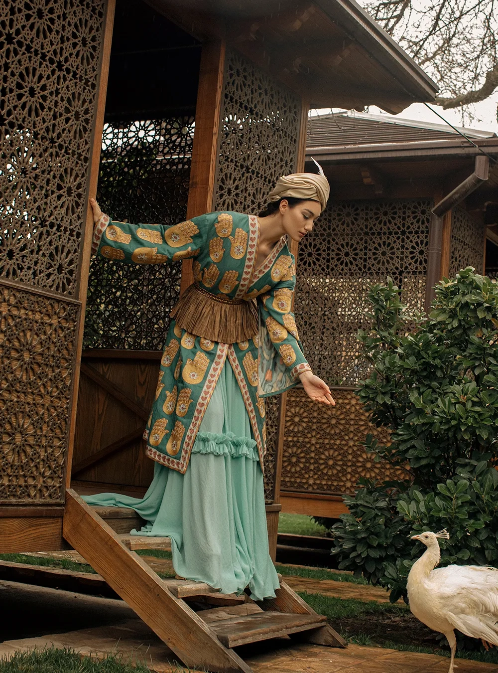 Chapan (Uzbek national outerwear) is made in a traditional technique with the addition of the designer’s original vision. The hereditary masters of Uzbekistan spend about two months to create this product. The sleeves are zippered for a variety of styles.
