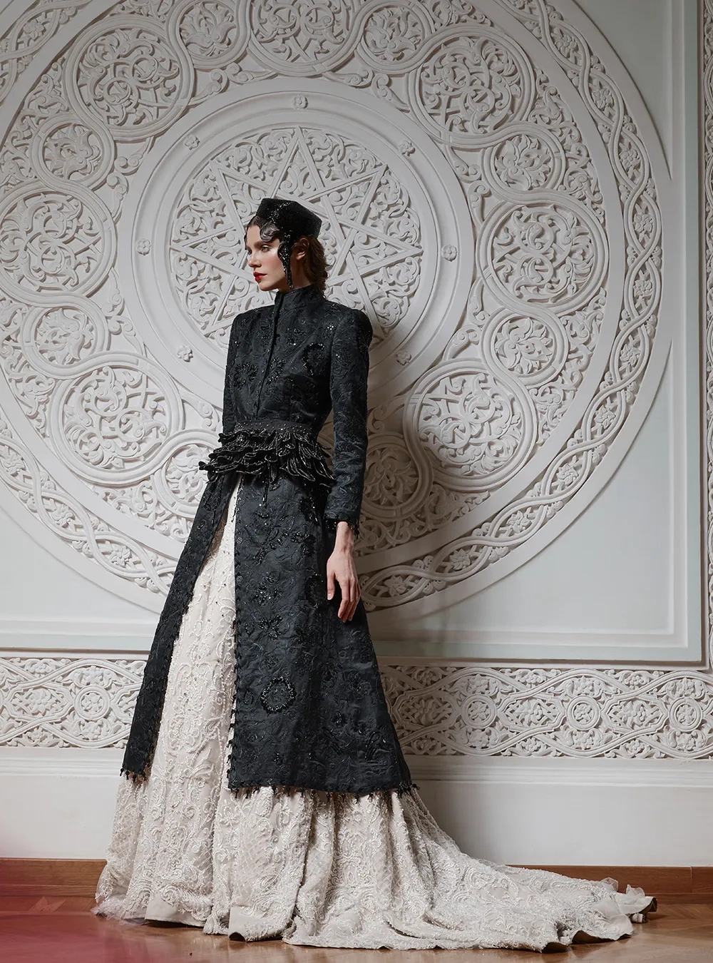 Luxurious silk chapan (Uzbek national outerwear) decorated with Suzane's handmade embroidery and beaded. The hereditary masters of Uzbekistan spend about two months to create this product. It can be worn with evening dresses or suits for going out, as well as combined with basic clothes on weekdays.