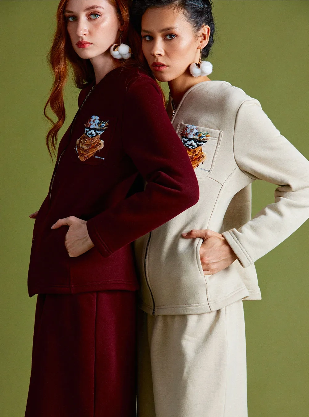A knitted suit with the author’s Pahtagul ornament, hand-embroidered with sequins and beads. A stylish solution for your comfortable pastime. You can leave a request for suits in a different color.