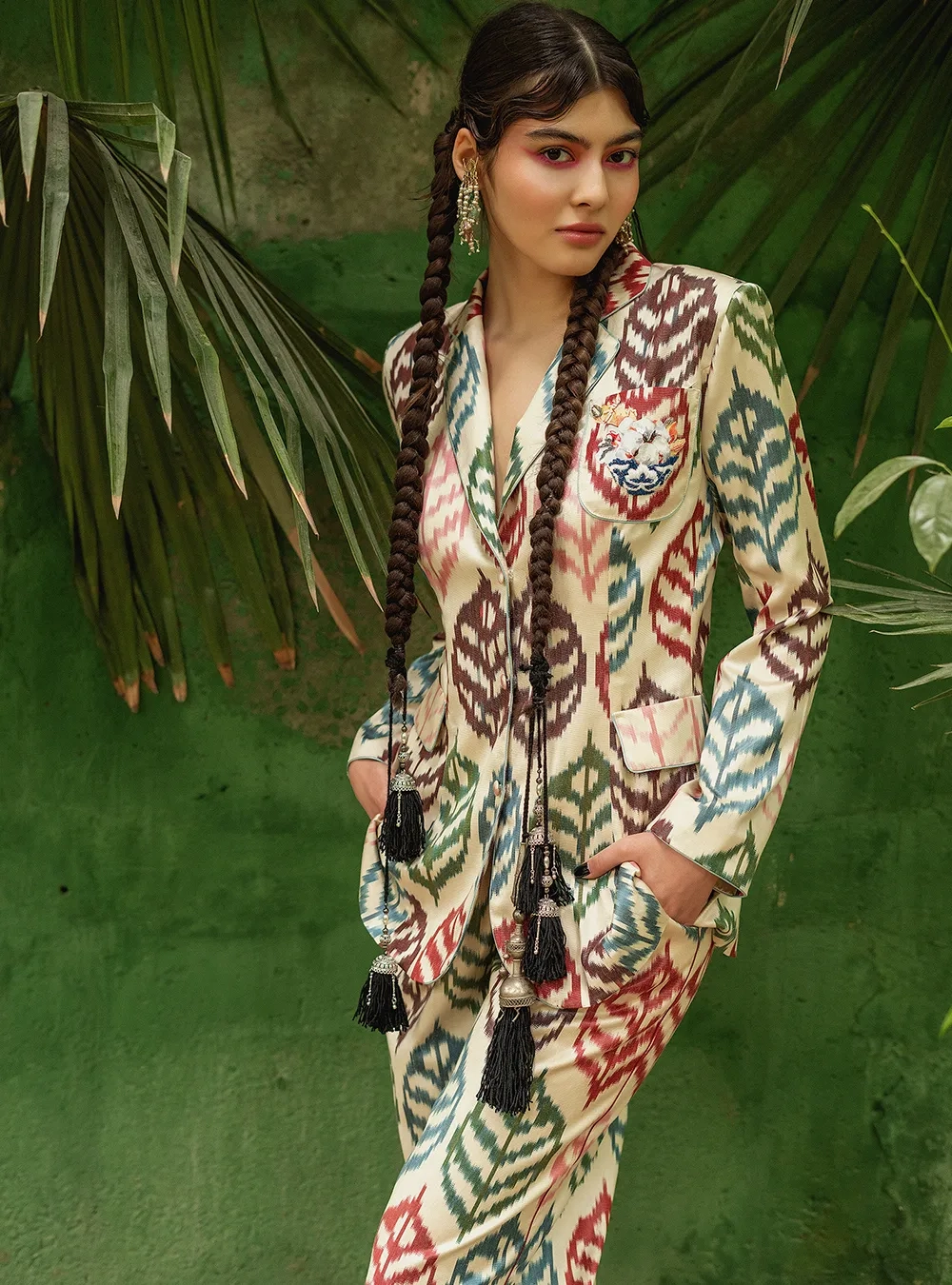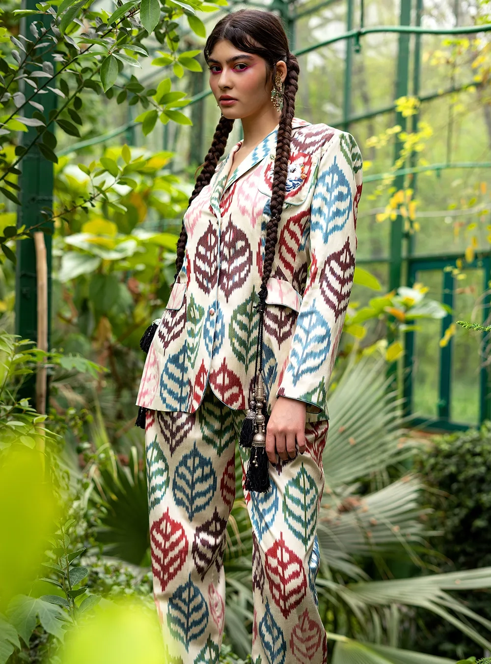 Pajama with the author’s Pahtagul ornament, hand-embroidered with sequins and beads. A stylish solution for your comfortable pastime, as well as a going out to the city. You can also leave a request for a product made of a different fabric.