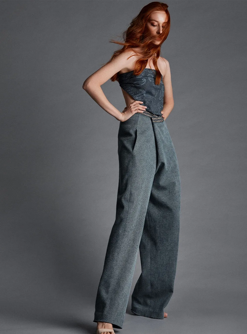 A piece from the B Jeans x Dildora Kasimova collaboration. A new look at denim and classic shapes with the addition of the designer’s original vision.