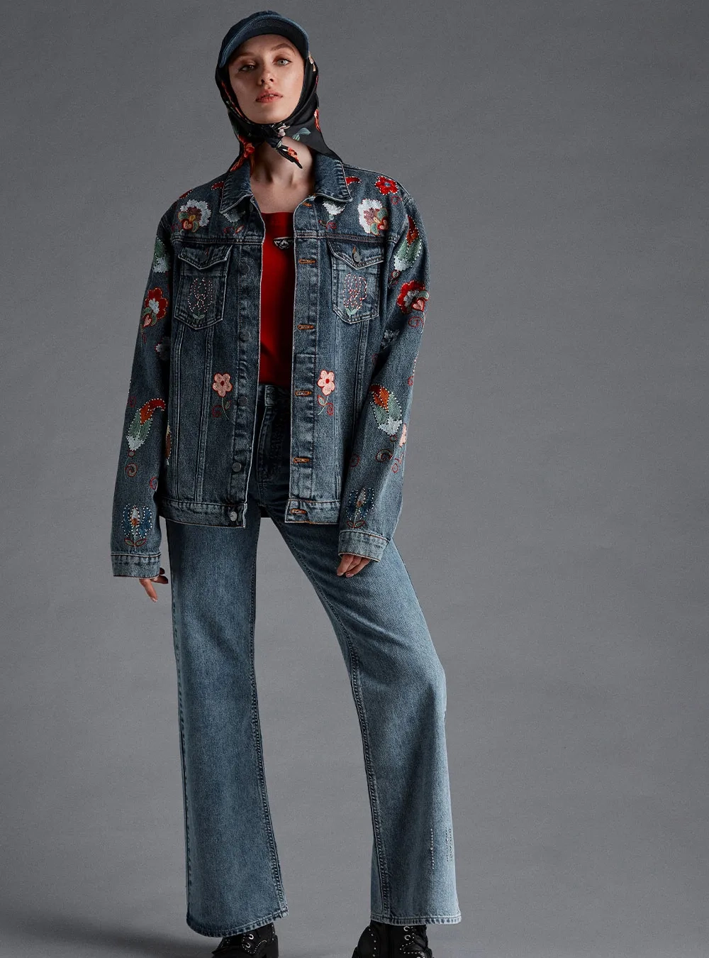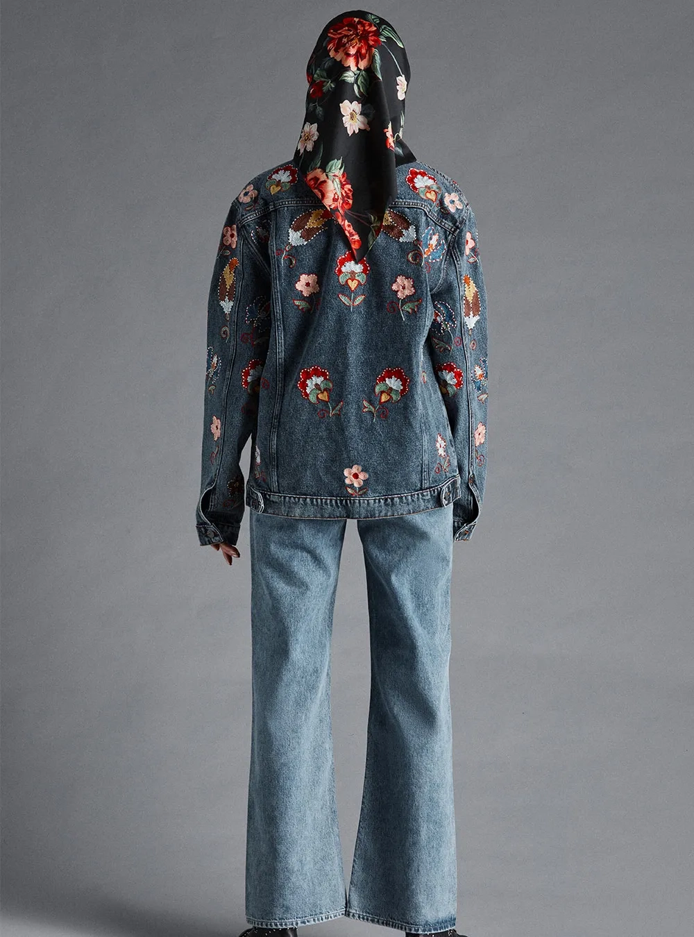 A piece from the B Jeans x Dildora Kasimova collaboration. A new look at denim and classic shapes with the addition of the designer’s original vision.