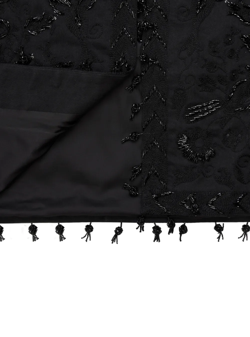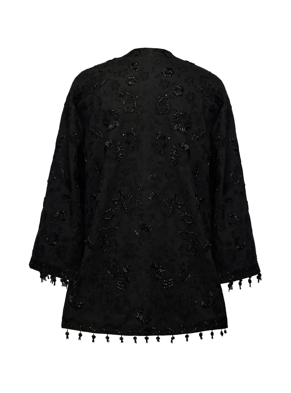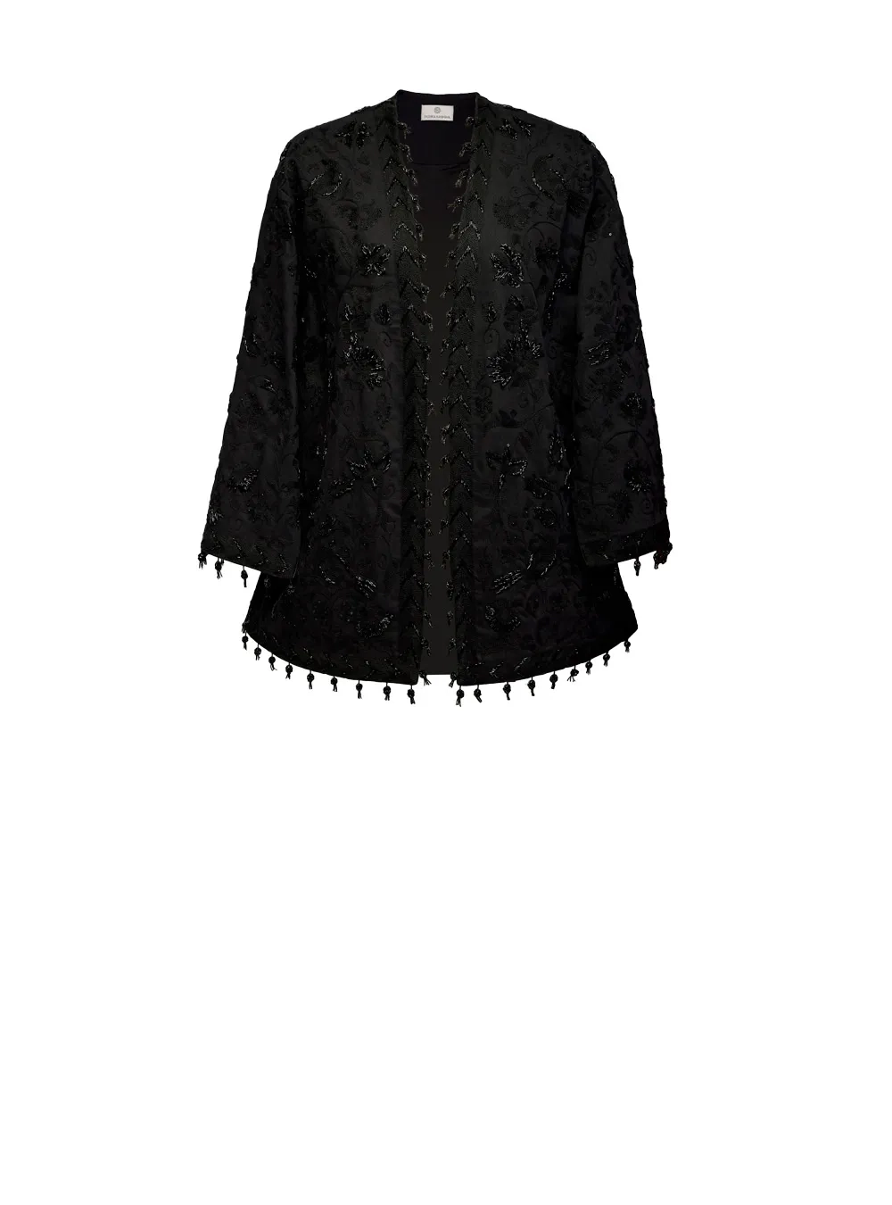 Роскошный чапан из шелка, декорированный вышивкой ручной работы Сюзане, а также украшен бисером. Изделие изготавливается потомственными мастерами Узбекистана около двух месяцев. Можно надевать с вечерними платьями или костюмами для выхода в свет, а также сочетать с базовой одеждой в будние.