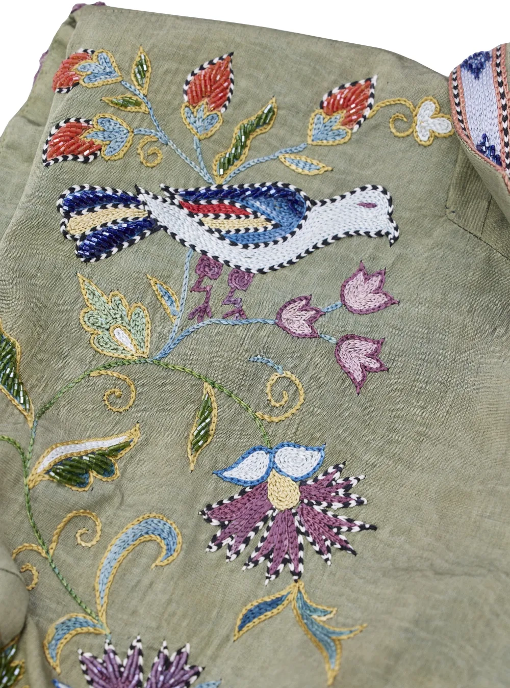 Роскошный жилет из шелка, декорированный вышивкой ручной работы cюзане, а также украшен бисером. Изделие изготавливается потомственными мастерами Узбекистана около одного месяца. Можно стилизовать с вечерними платьями или костюмами для выхода в свет.