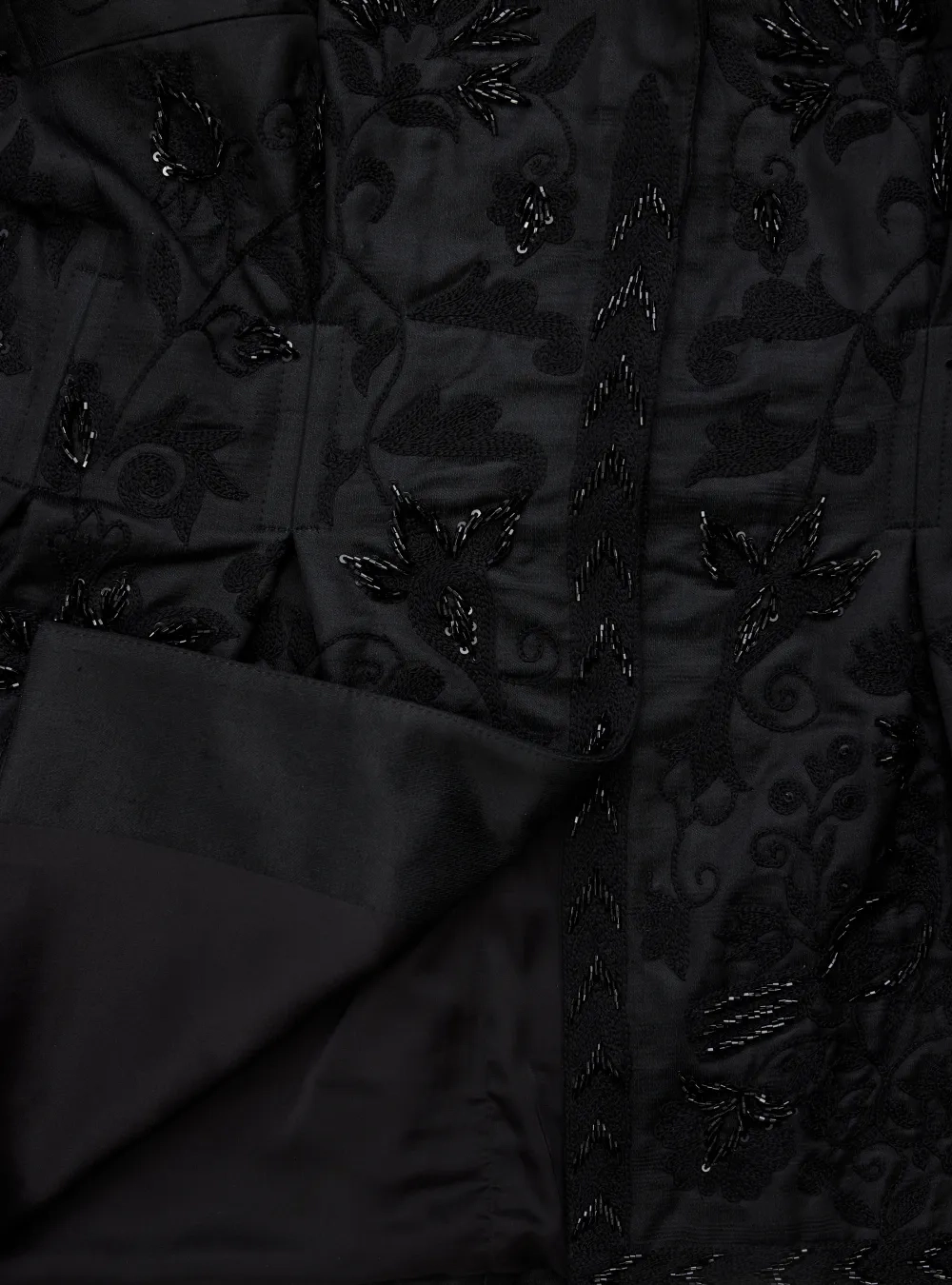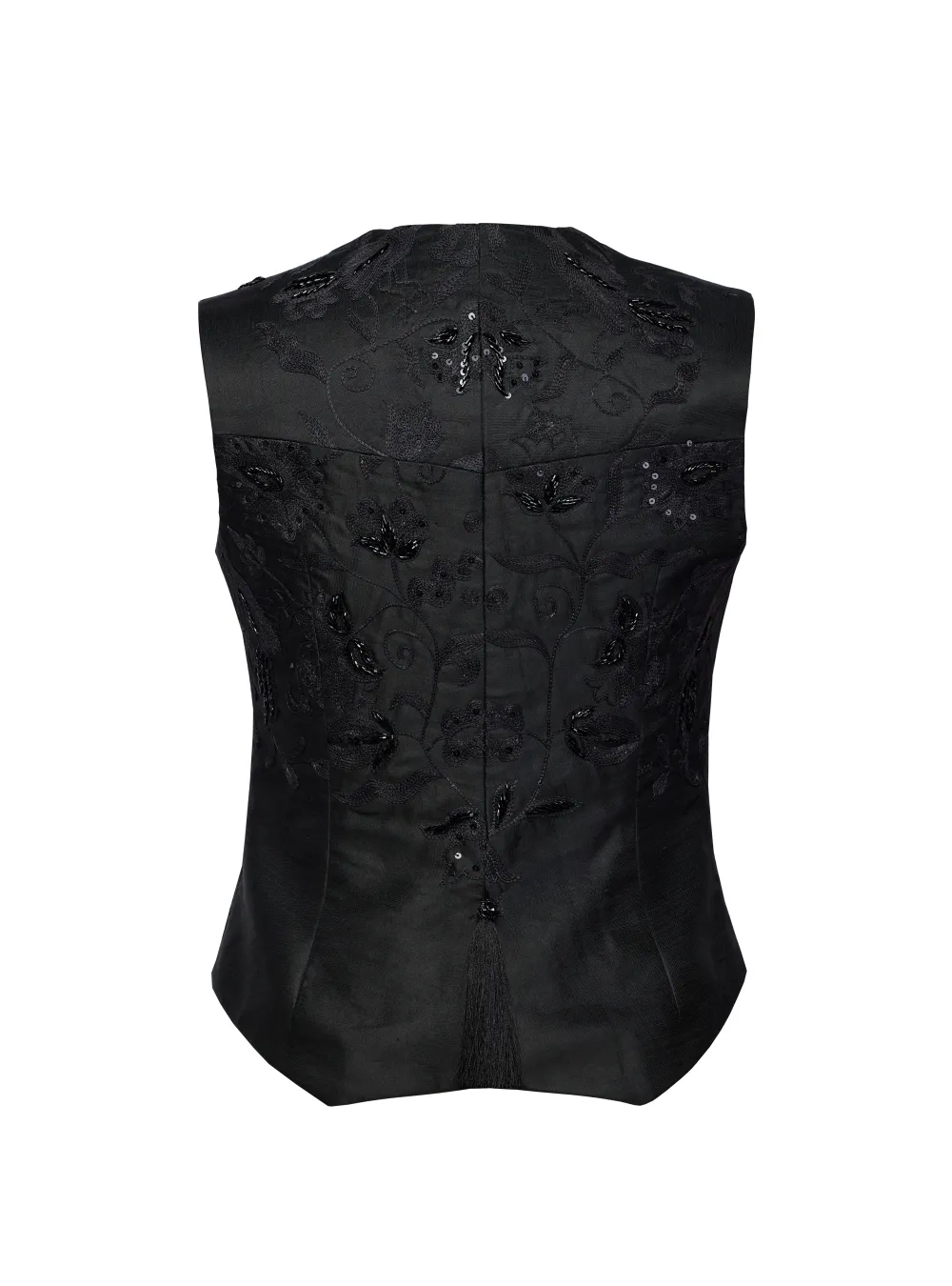 Роскошный жилет из шелка, декорированный вышивкой ручной работы cюзане, а также украшен бисером. Изделие изготавливается потомственными мастерами Узбекистана около одного месяца. Можно стилизовать с вечерними платьями или костюмами для выхода в свет.