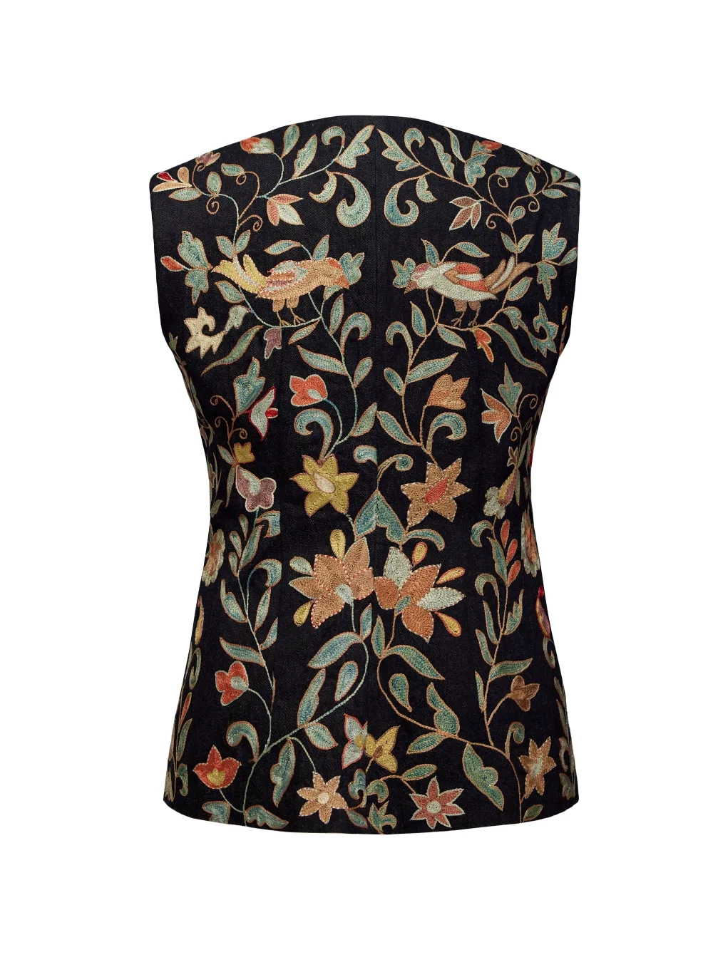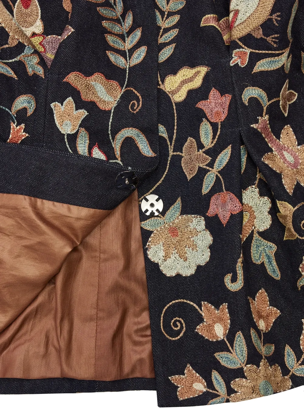 Куртка из джинсы с вышивкой сюзане и авторским орнаментом Pahtagul, который вышит вручную. Стильное решение для вашего комфортного времяпровождения.