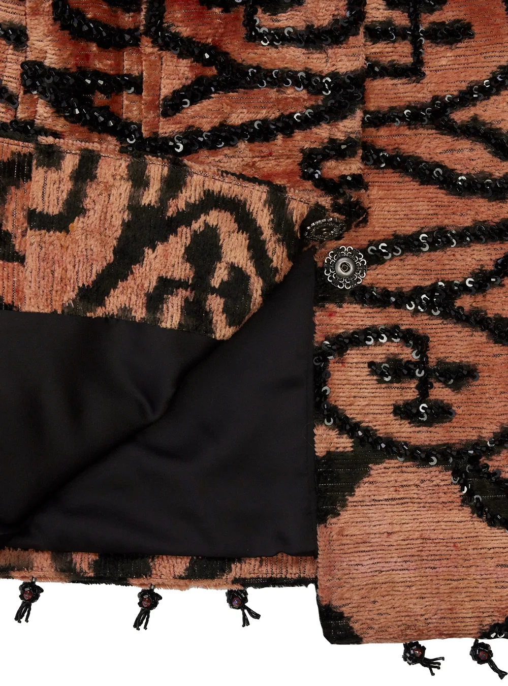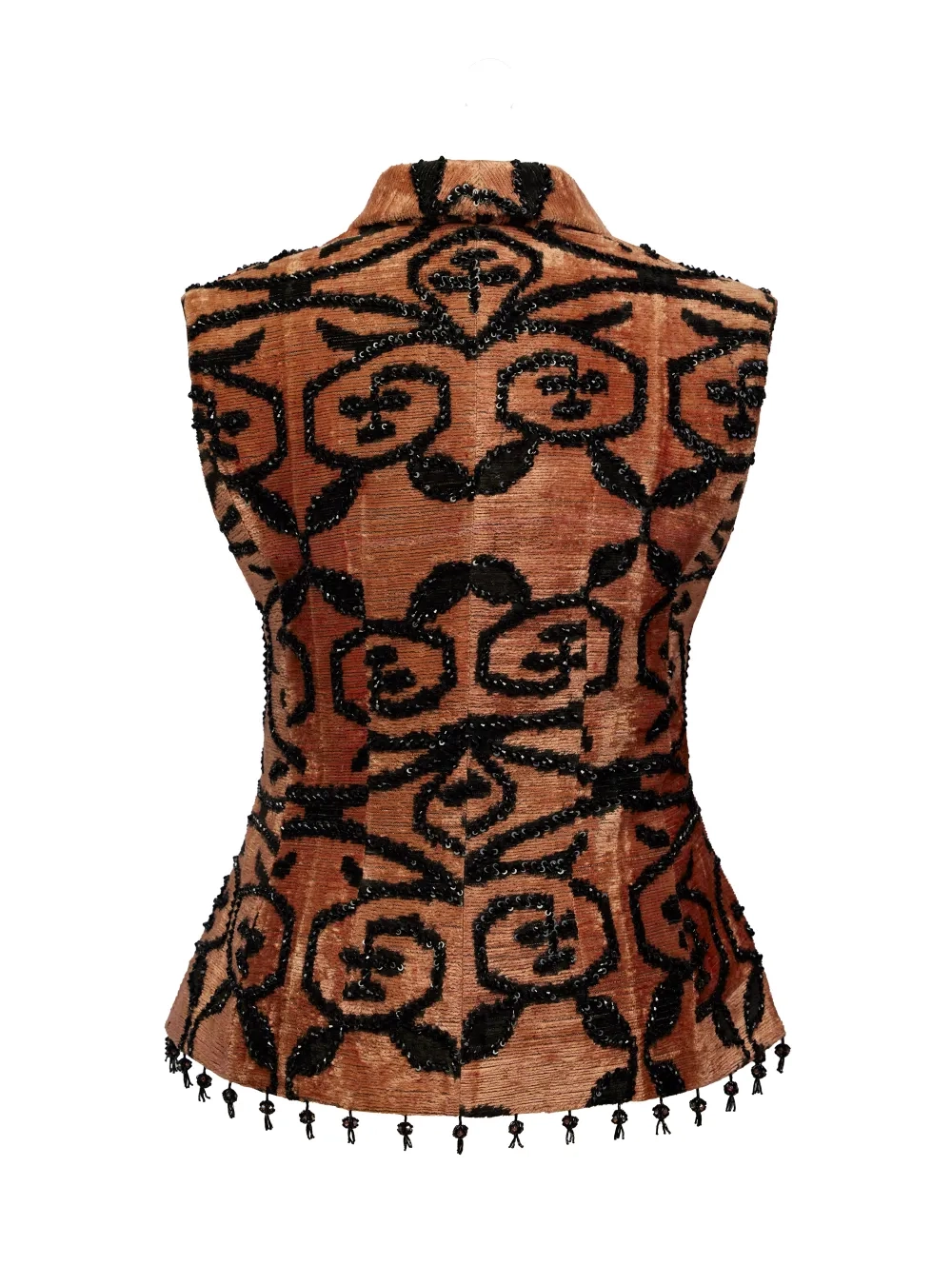 Вечерний жилет из кутюрной коллекции. Изделие из бахмаля декорировано бисером и станет эффектным выбором для ваших ярких событий.