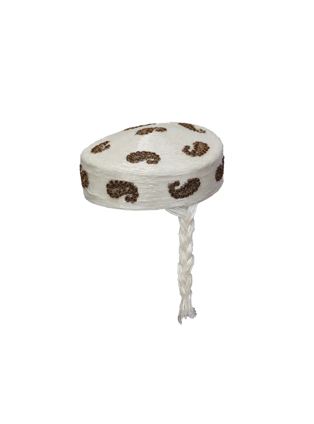 Тюбетейка (узбекский традиционный головной убор) в новом исполнении от Дильдоры Касымовой. Изделие декорировано бисером и станет отличным дополнением вашего вечернего образа.