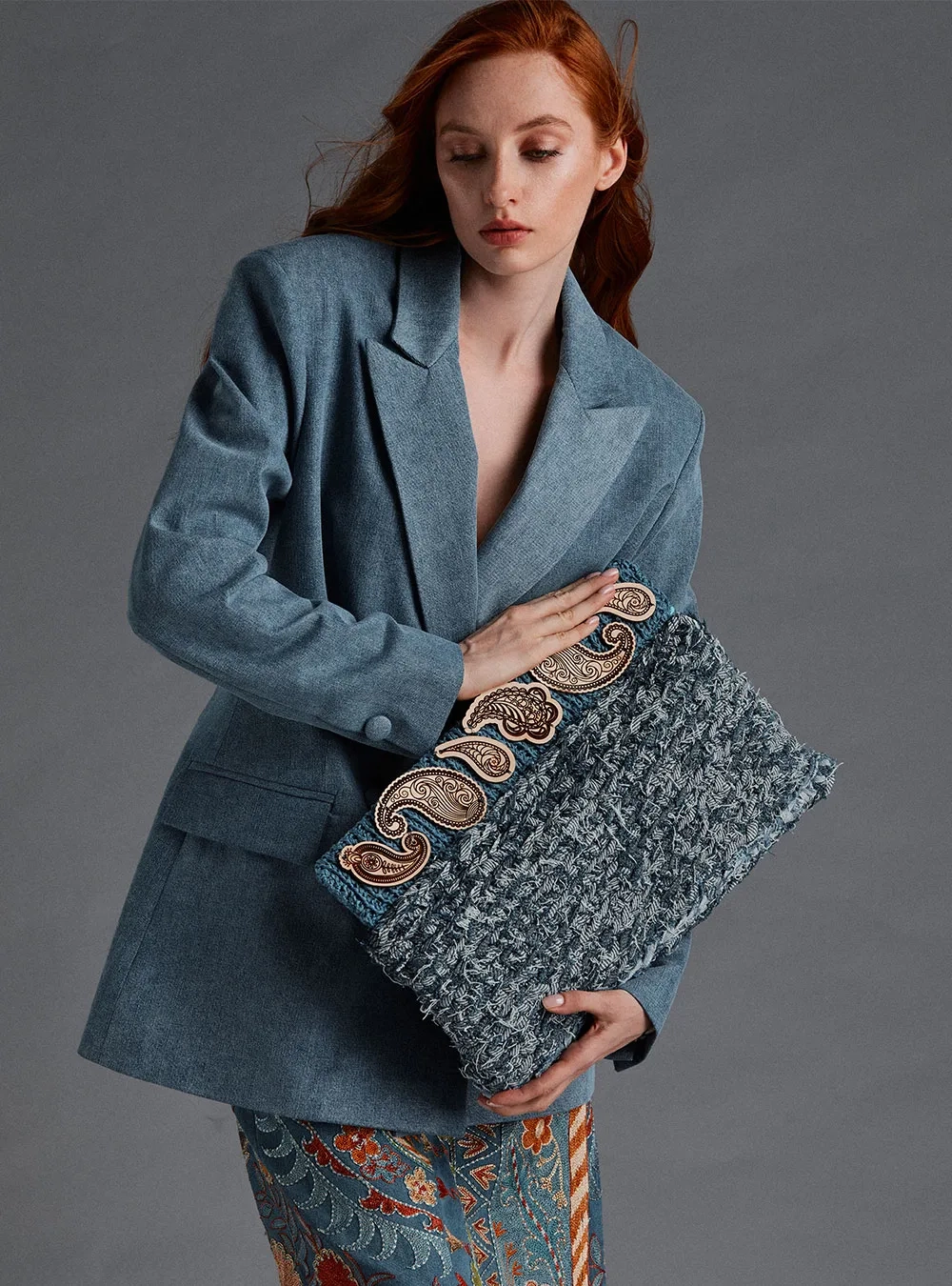 A piece from the B Jeans x Dildora Kasimova collaboration. A new look at denim and classic shapes with the addition of the designer’s original vision.