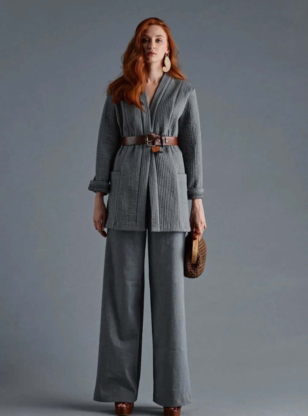 A piece from the B Jeans x Dildora Kasimova collaboration. Chapan (Uzbek national outerwear) is made in a traditional technique with the addition of the designer’s original vision. It can be styled with plain dresses or suits for evening outings or with basic clothes for every day.