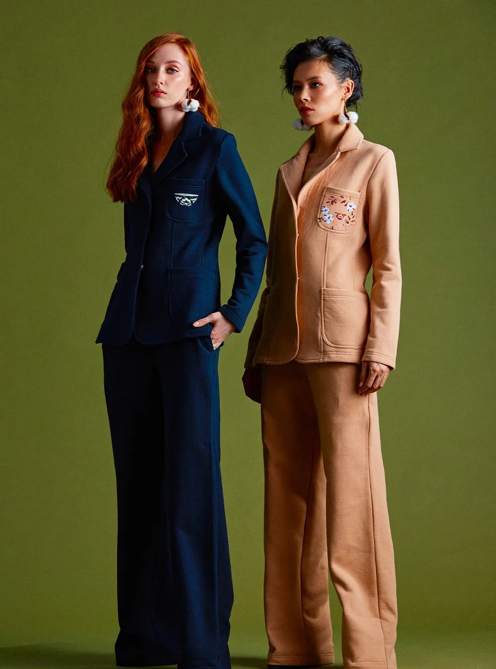 Трикотажный костюм с авторским орнаментом Pahtagul, который вышит вручную пайетками и бисером. Стильное решение для вашего комфортного времяпровождения.