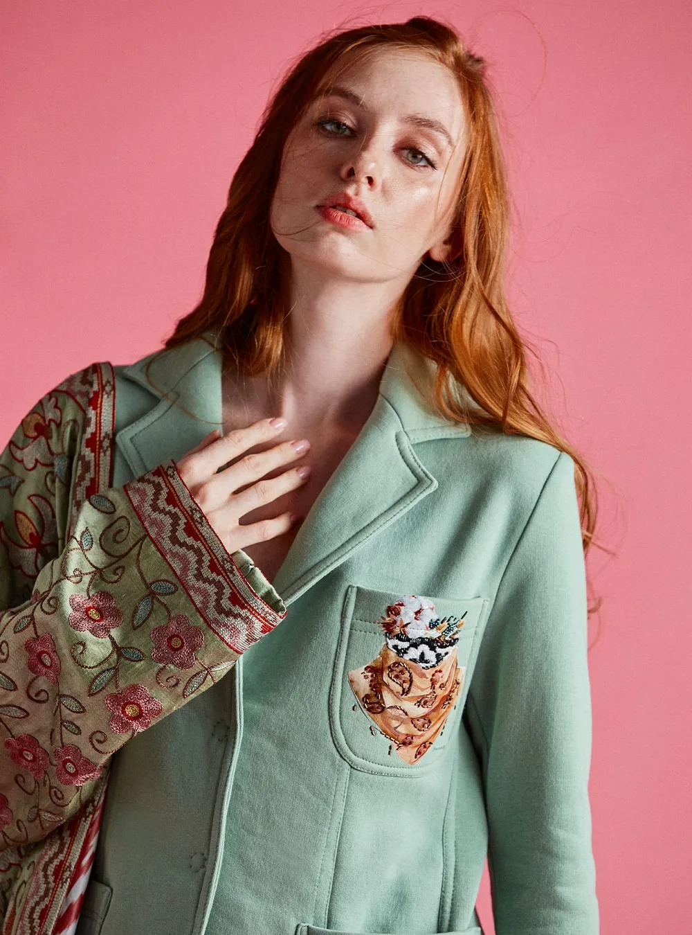 Трикотажный костюм с авторским орнаментом Pahtagul, который вышит вручную пайетками и бисером. Стильное решение для вашего комфортного времяпровождения.