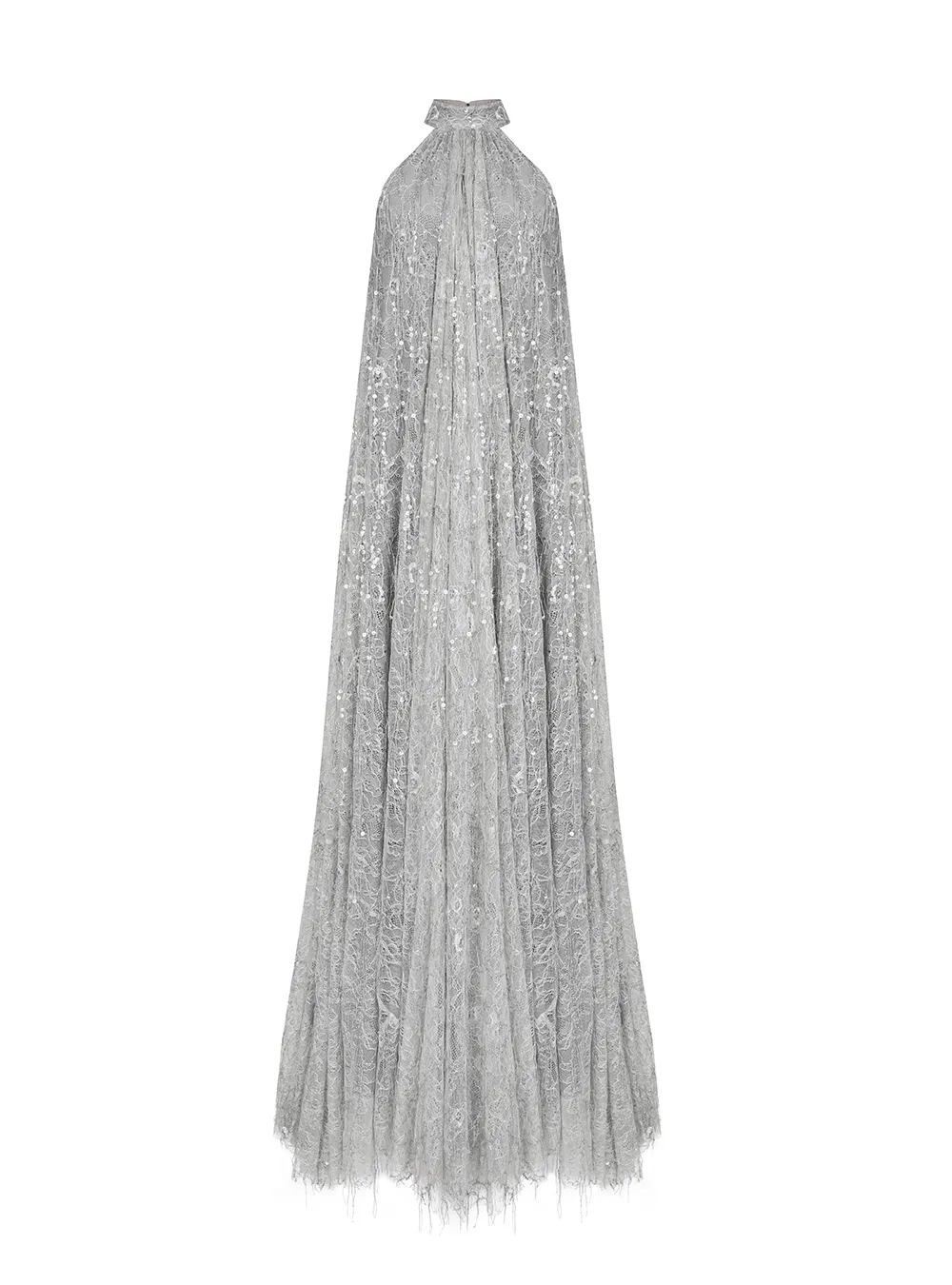 Роскошное вечернее платье из первой линии бренда, которое декорировано кружевом и вышивкой паейтками. Эффектный выбор для ваших ярких событий в жизни.