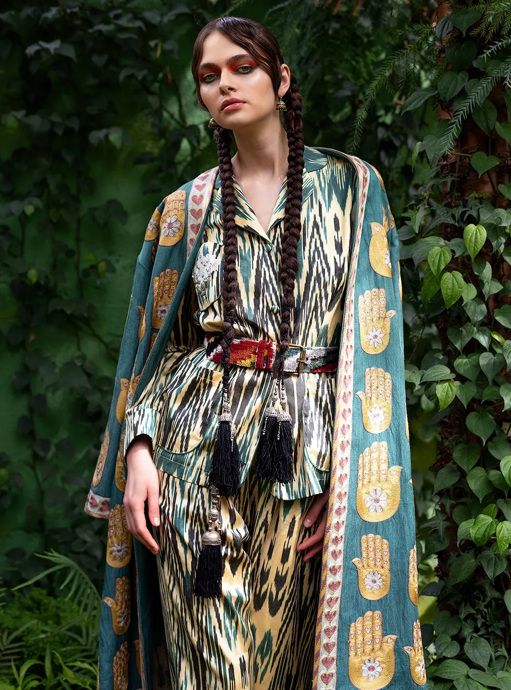 Пижама с авторским орнаментом Pahtagul, который вышит вручную пайетками и бисером. Стильное решение для вашего комфортного времяпровождения, а также стильного выхода в город. Также можно оставить заявку на изделие из другой ткани.