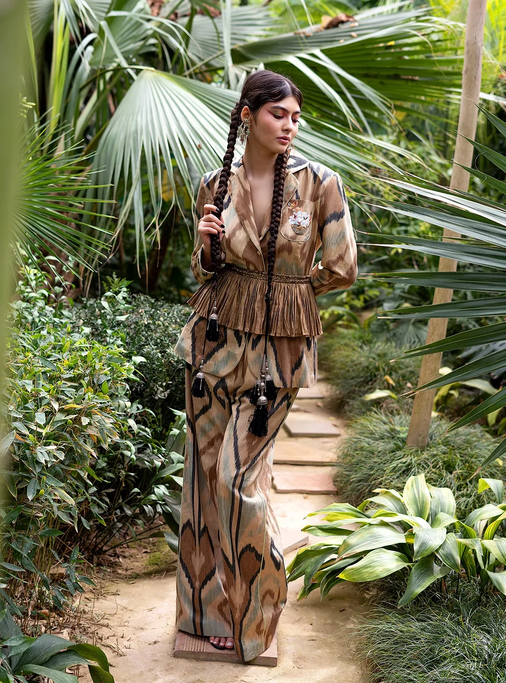 Пижама с авторским орнаментом Pahtagul, который вышит вручную пайетками и бисером. Стильное решение для вашего комфортного времяпровождения, а также стильного выхода в город. Также можно оставить заявку на изделие из другой ткани.