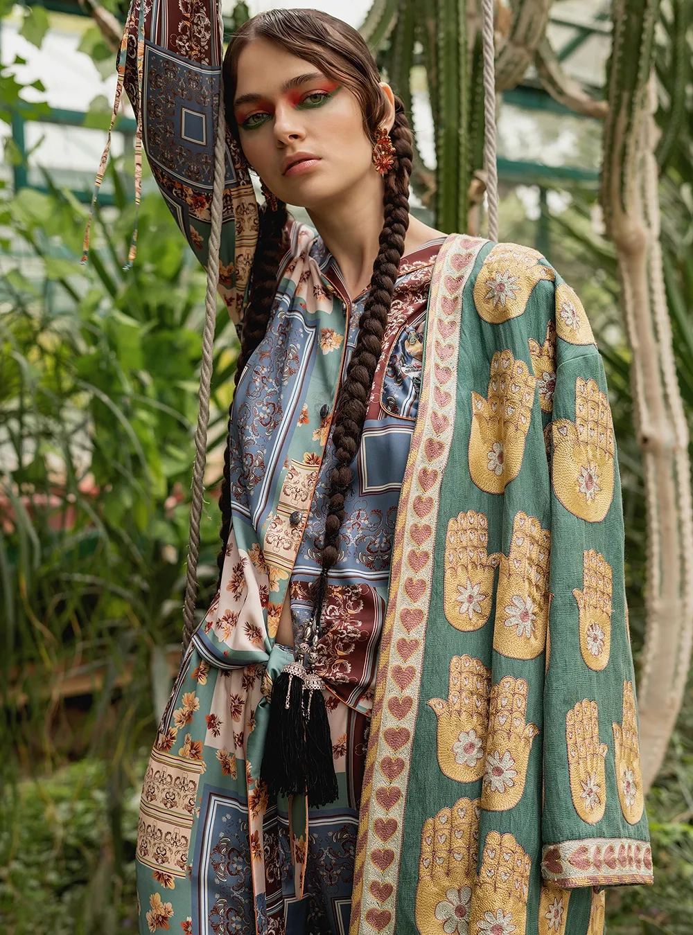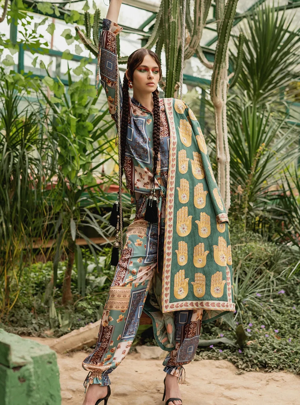 Пижама с авторским орнаментом Pahtagul, который вышит вручную пайетками и бисером. Стильное решение для вашего комфортного времяпровождения, а также стильного выхода в город. Также можно оставить заявку на изделие из другой ткани.