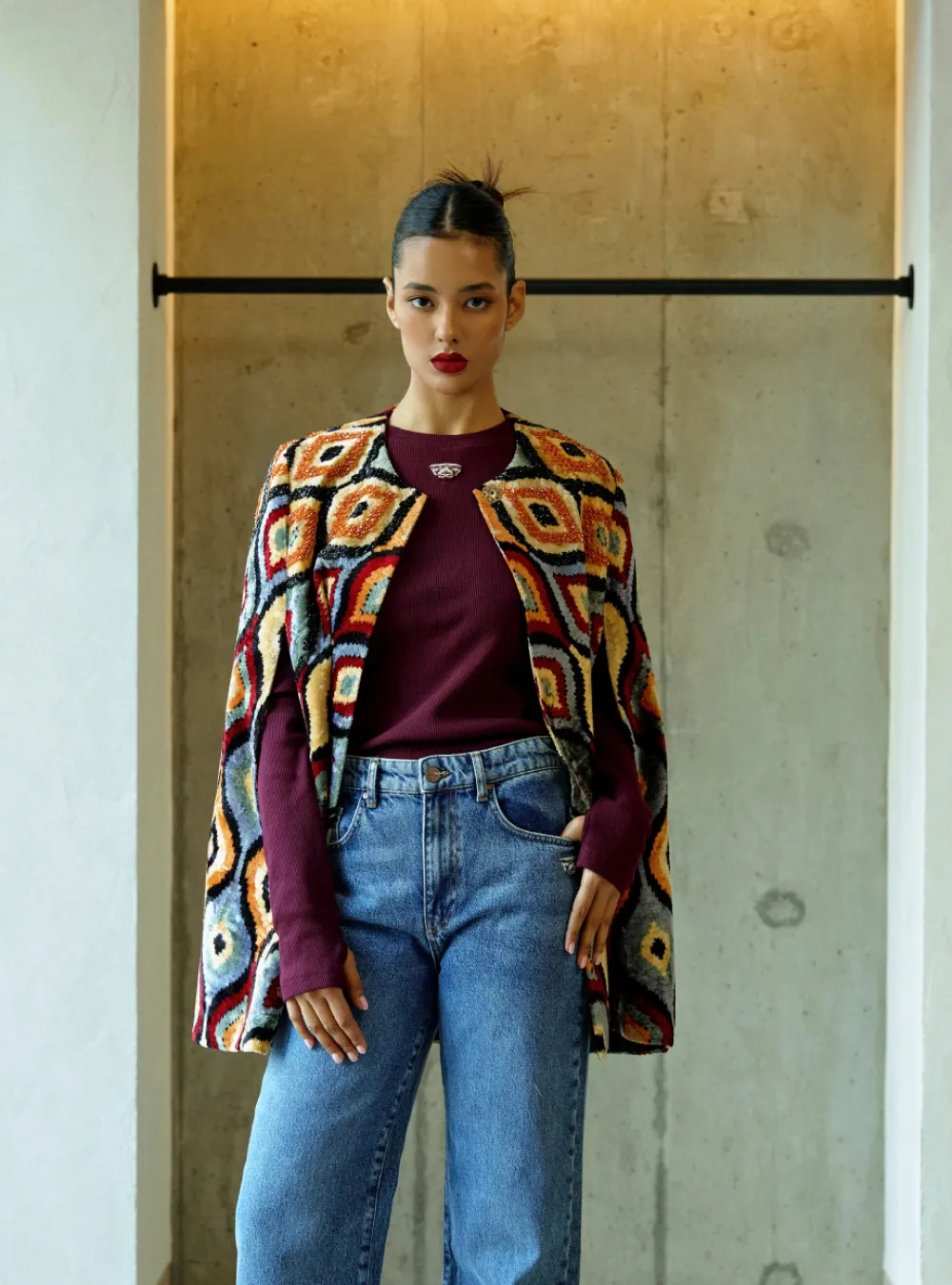 Кейп классического кроя в авторском видении Дильдоры Касымовой. Выполнен из бахмаля и декорирован бисером.