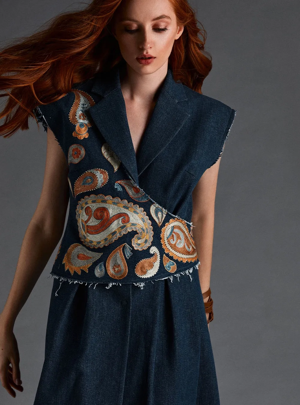Изделие из коллаборации B Jeans x Dildora Kasimova. Новый взгляд на деним и классические формы с добавлением авторского видения дизайнера.