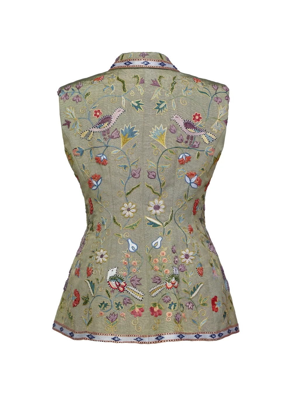 Роскошный жилет из шелка, декорированный вышивкой ручной работы cюзане, а также украшен бисером. Изделие изготавливается потомственными мастерами Узбекистана около одного месяца. Можно стилизовать с вечерними платьями или костюмами для выхода в свет.