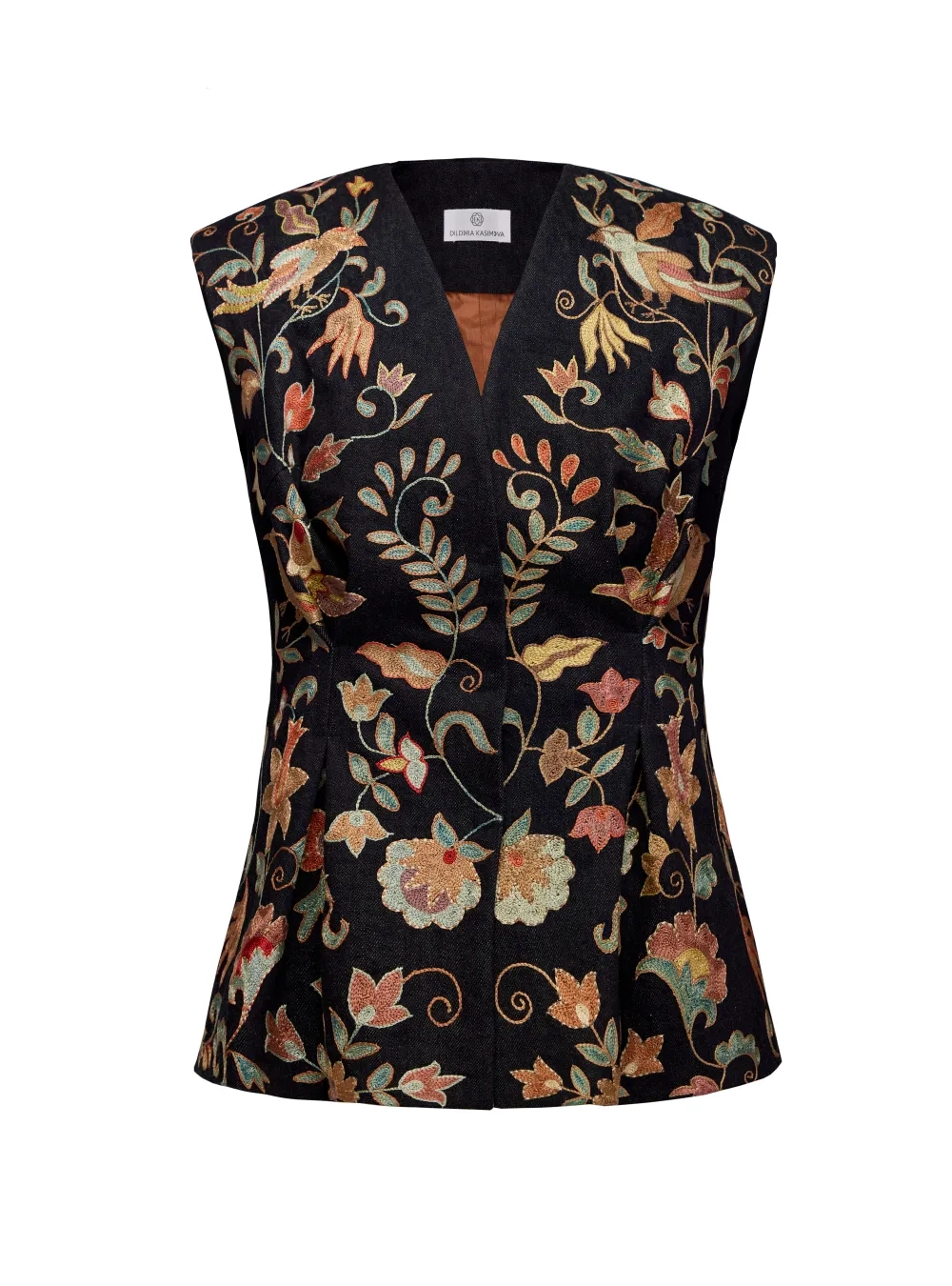 Куртка из джинсы с вышивкой сюзане и авторским орнаментом Pahtagul, который вышит вручную. Стильное решение для вашего комфортного времяпровождения.