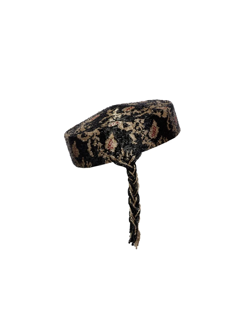 Тюбетейка (узбекский традиционный головной убор) в новом исполнении от Дильдоры Касымовой. Изделие декорировано бисером и станет отличным дополнением вашего вечернего образа.